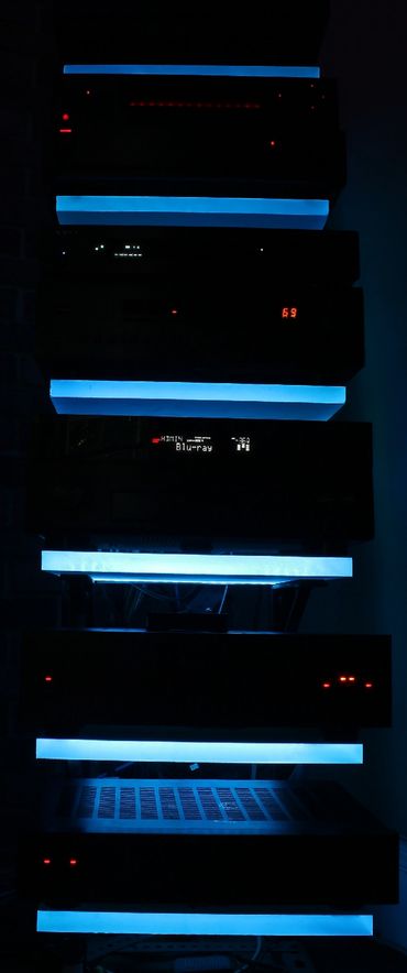 This space was designed and built to be a music listening room. It is wired with a 13.2.4 Dolby Atmos / DTS:X / Auro 3D speaker configuration; although room acoustics are geared for two channel listening. Except for the mains and subs, all channels are discretely housed in the walls and ceiling. These are not "in-wall" speakers; they are full cabinets inside the walls, with a custom exterior screen, painted to match the room. It is also 4K projector ready; and if the need should arise, ILDA compatible wiring for full lasershow capabilities has been installed. Although the project is not 100% completed, still awaiting acoustic panels for the front wall, and some minor alterations to lighting effects; the room has been putting a smile on the client's face for months.